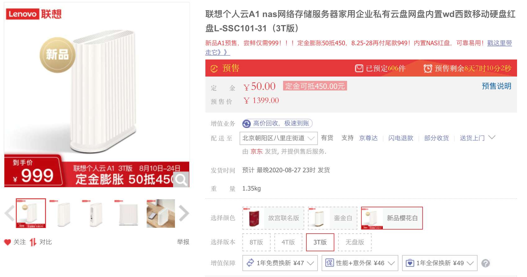 新一代联想个人云存储A1在京东商城开启预售,售价1399元,预售期的定金膨胀活动可以50定金抵450,相当于到手价999元,优惠力度巨大。不过很多人好奇本次即将发售的个人云存储A1作为联想个人云存储第二代产品,究竟有何过人之处?下面我们就带大家一起去看看!