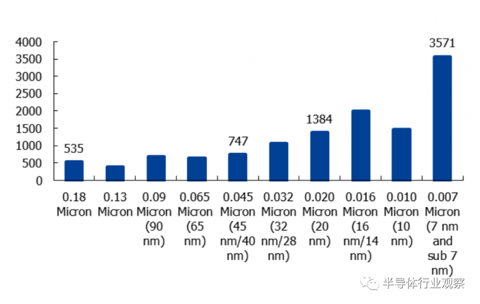 但先进制程的持续升级将会带来巨额的成本。根据IBS,3nm 芯片的设计费用约 5~15 亿美元,工艺开发费用约 40~50 亿美元,兴建一条3nm产线的成本约 150~200 亿美元。3nm芯片仅比5nm芯片提升15%性能、降低25%功耗。
