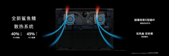 性能方面,两款笔记本最高搭载AMD锐龙7 4800H标压移动处理器,CPU可持续40W大功率输出,全新鲨鱼鳍散热系统(双风扇、双热管)和PC主板小型化技术,散热能力提升,而且更安静。