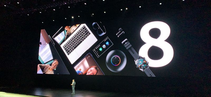本次发布会开始,华为消费者业务首席执行官余承东上台,他首先宣布了华为智慧全场景战略--1+8+N,打造无缝的AI生活体验。