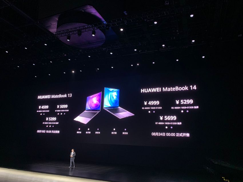华为 MateBook 13起售价格为 4599元,将于今天开启预售,MateBook 14的起售价格为 4999元,将于8月24日正式开售。