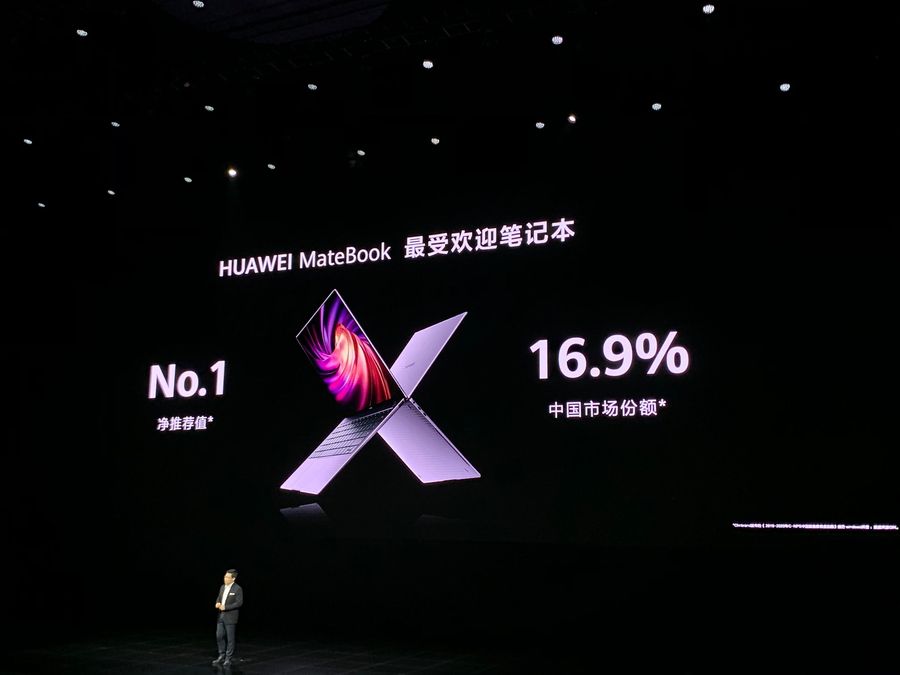 余承东简单回顾了下 MateBook 系列在过去取得的成绩,中国市场份额达到 16.9%。