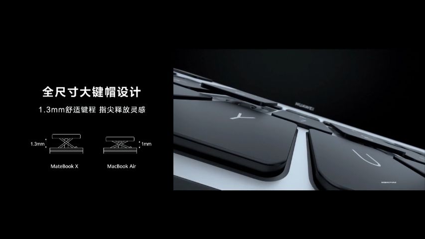 Matebook X 拥有全尺寸大键帽设计,键程为 1.3 mm,
