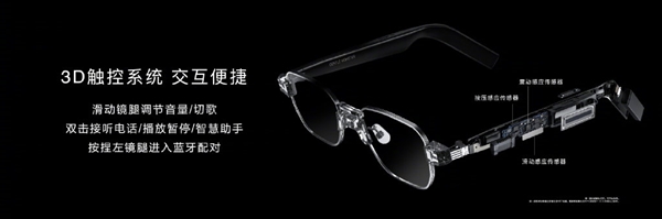 华为Eyewear II智能眼镜采用了定制的128mm2超薄大振膜双扬声器,开放立体声音场,音乐效果出色。