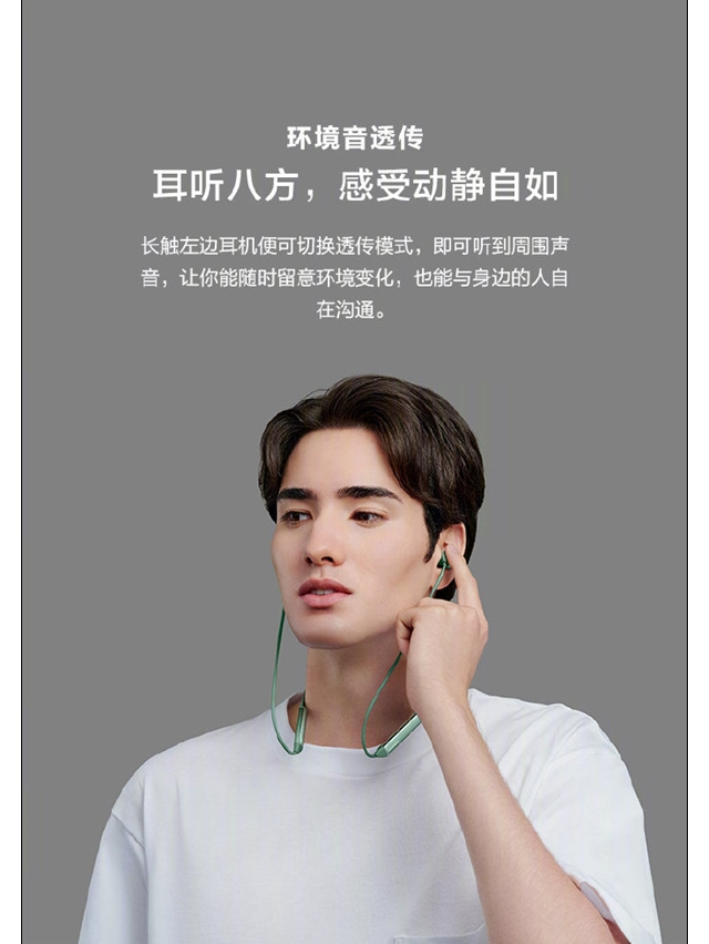 除了降噪模式,华为FreeLace Pro无线耳机还提供了环境音透传模式,轻触即可聆听环境声音。