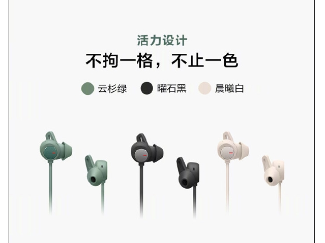 外观设计方面,华为FreeLace Pro无线耳机具备轻巧时尚机身,提供曜石黑、云杉绿、晨曦白三种配色可选。