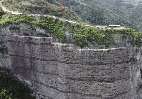 该工程于2018年12月开工建设,轨面距山顶高约330米,是目前国内难度最大的危岩体防护施工项目之一。
