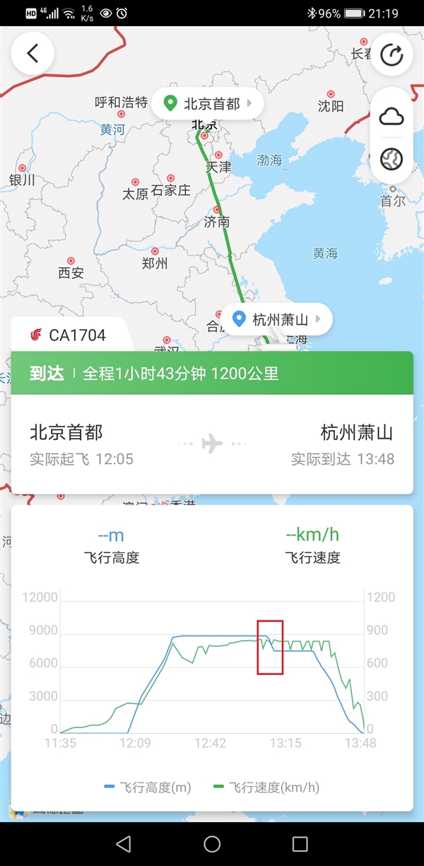 幸运的是,整个航程除此之外一切正常,在延误25分钟的情况下,还提前12分钟到达了杭州萧山机场。