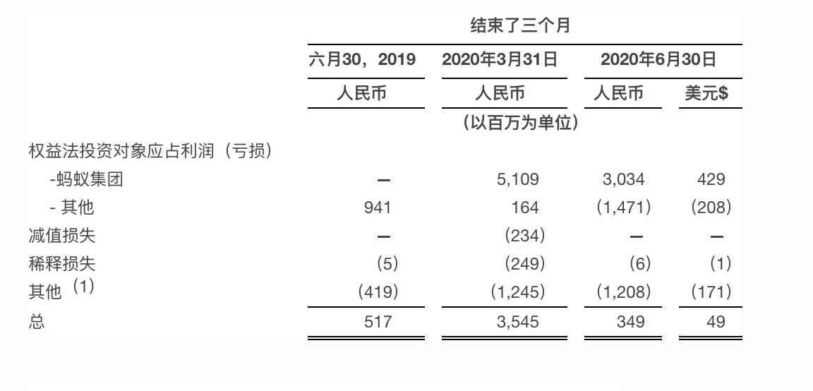 具体而言,截至2020年6月30日止三个月,阿里巴巴利息收入和投资净收益为人民币221.37亿元,而2019年同期为1.87亿元。