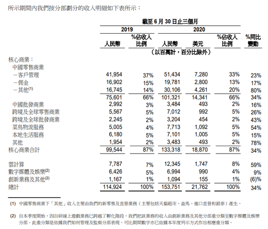 据悉,“其他”由新零售及直营业务组成,而直营业务又主要包括天猫超市、盒马、进口直营和银泰。