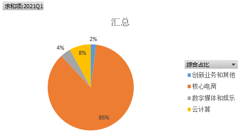 而从赚钱的角度来分析,核心商业仍然是最赚钱的,云计算、数字媒体及娱乐和创新业务及其他业务都在亏损,分别亏损17.74亿、20.18亿、35.65亿。