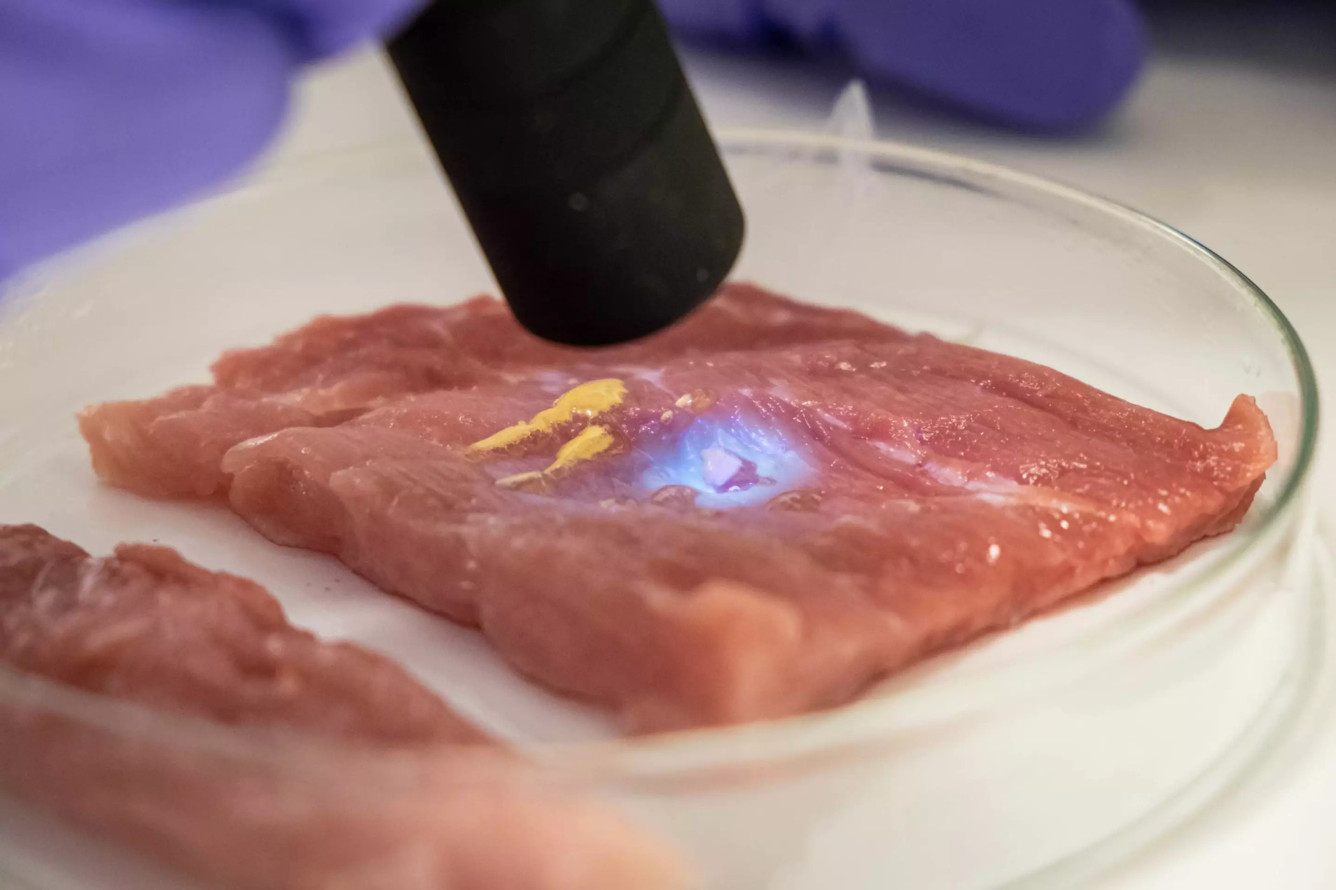 当处于液体状态时,CaproGlu将被直接应用到湿生物组织的伤口或切口上,然后将它暴露在低剂量的紫外线下几秒钟从而触发它转变为固体且有弹性的橡胶。在此过程中,它取代了组织表面的液体,实现了牢固的结合--据称,它的粘合强度是市面上的生物粘合剂的3到7倍。
