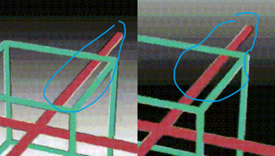 然后呢,这个脑补过程并非是 100% 可靠的。像小辣椒前面提到的这三组图片,就是「 运动错觉 」:大家在一些静态图片/图片的静态要素中,感受到了运动的错觉。以立方体图像来举例,如果你仔细观察的话,红线和由绿线组成的立方体的线条边缘是有描边的。通过背景、描边颜色的变化,视觉上让你产生一种进光方向在动态变化的错觉,而你的大脑接受到这个线索以后,误以为物体是在运动,脑补出了运动画面。