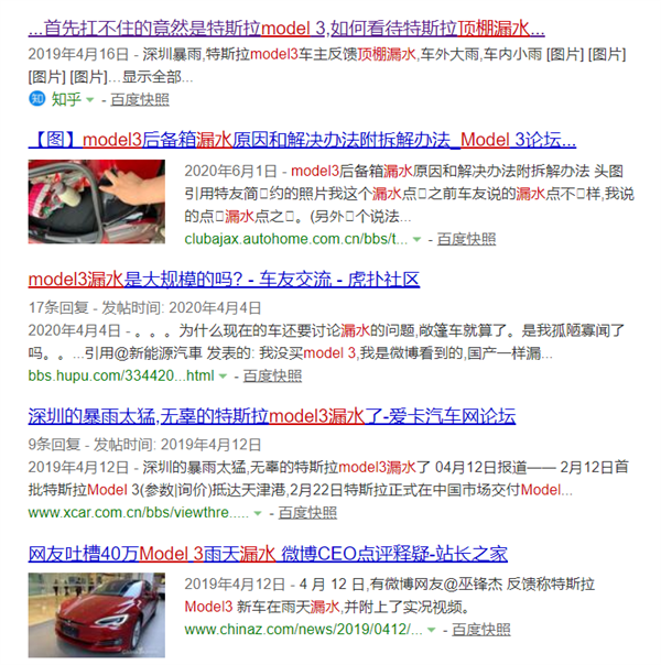 事实上,通过在网上搜索Model 3的车顶漏水信息,很轻易就找到了大量的车主投诉与吐槽信息,车顶漏水几乎成为了特斯拉Model 3的通病。