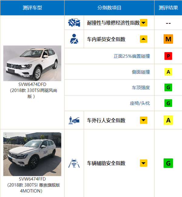只不过其成绩同样不理想,车内乘员安全指数为M(一般)、车外行人安全指数为A,整体得分仅次于帕萨特。