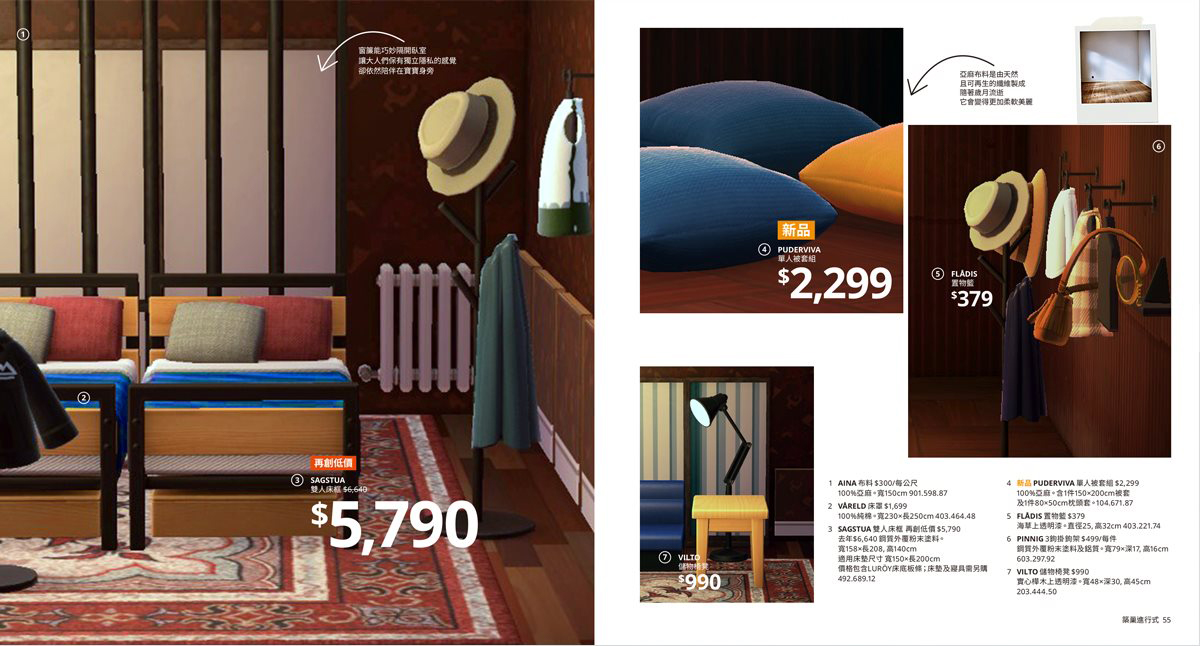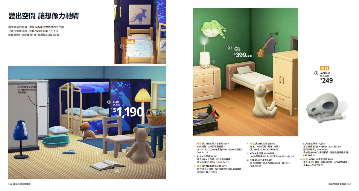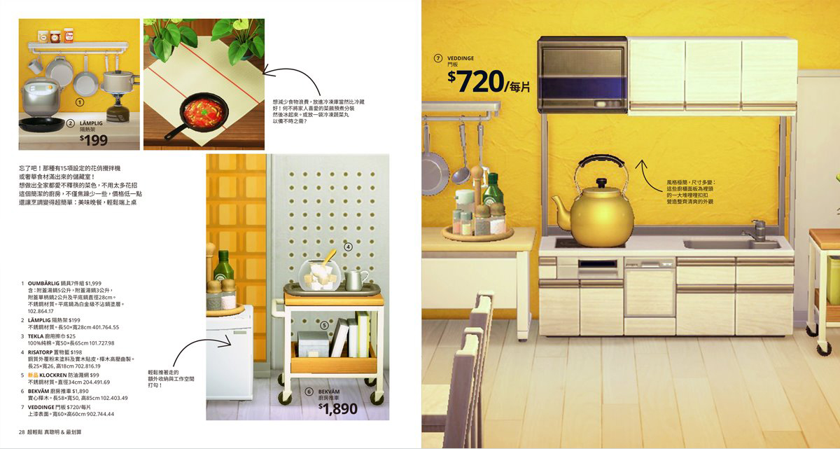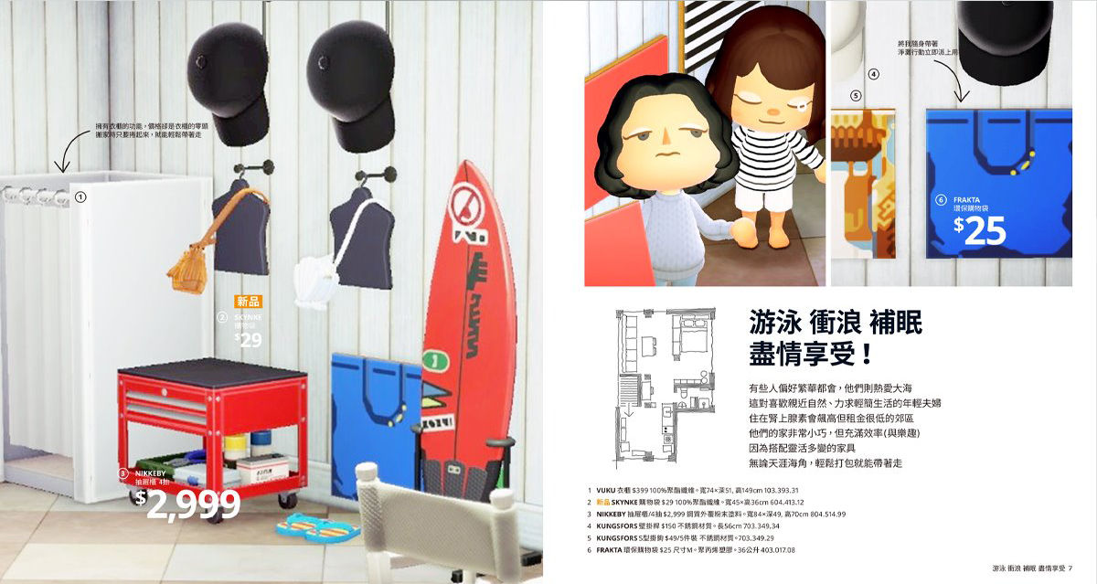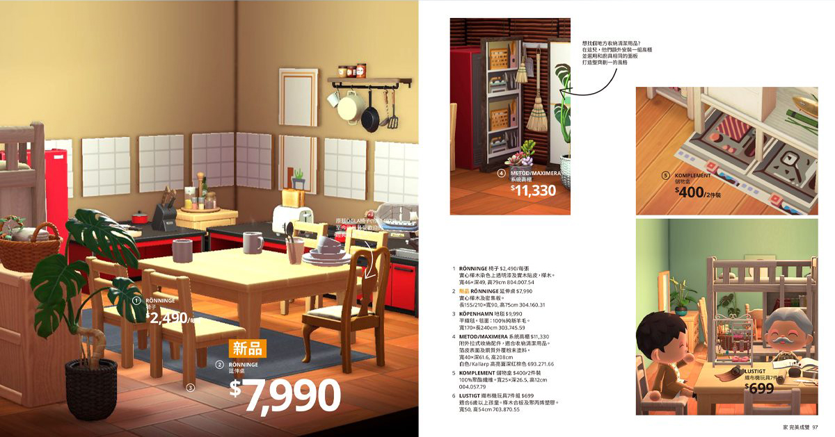 《动物森友会》(Animal Crossing)以其引人入胜的钓鱼、狩猎和室内设计的组合而成为全球现象级游戏之后,大型卖场也在试图利用其深入人心的影响力。现在,IKEA正是这样做的,他们利用任天堂游戏中的角色和游戏中的物品,重新制作了其台湾地区2021年商品目录的一些页面。