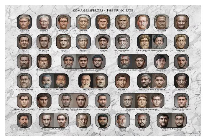 Voshart将他从雕像、钱币和画作中收集到的帝王图像反馈给ArtBreeder,然后根据历史描述手动调整肖像,反馈给GAN。“我会在Photoshop中进行工作,将其加载到ArtBreeder中,对其进行调整,将其带回Photoshop中,然后重新加工,”他说。“这样做的结果是最好的照片逼真的质量,并且避免了掉进不可思议的山谷的道路。”