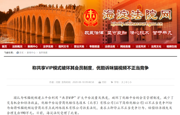 前几天的时候,优酷起诉共享VIP平台咪喵视频成为了人们关注的新热点,对于这项起诉,优酷表示,咪喵视频破坏了优酷会员制度,索赔190万。北京海淀法院受理了此案,此案正在进一步审理中。咪喵视频其实并非共享VIP平台的个例,在庞杂的互联网环境中,我们可以找到很多类似的平台,有时候看起来可能很荒谬,但是,存在即合理。一部分消费者的需求在为这些平台源源不断地输送新鲜血液。