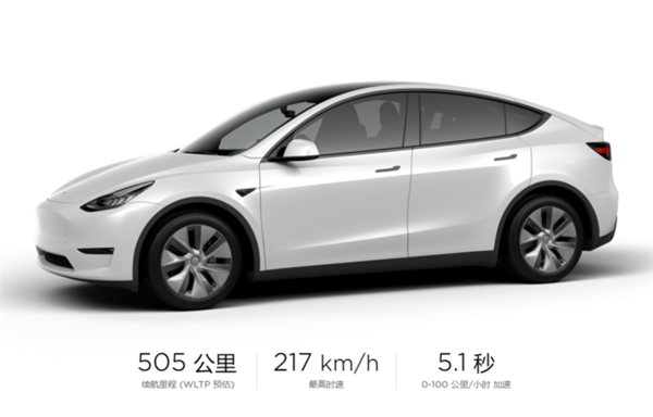 此外,在动力及续航方面,Model Y长续航版WLTP的工况续航里程为505km,百公里加速5.1秒,高性能版本为480km,百公里加速时间为3.7秒。