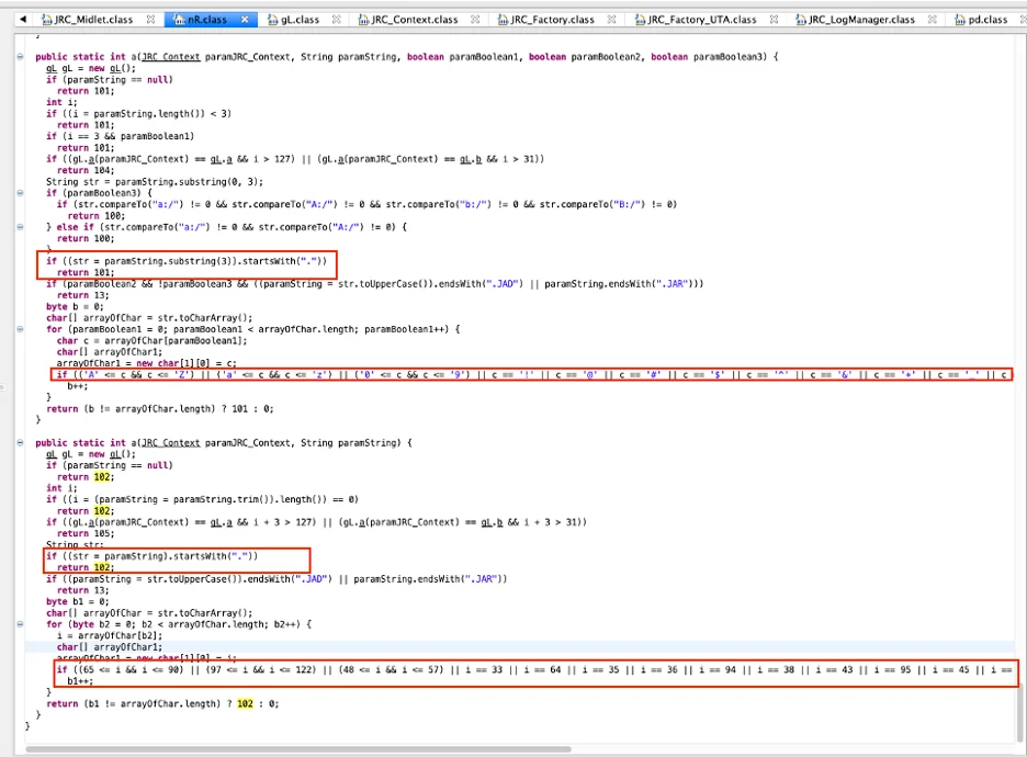 然而,X-Force Red发现的漏洞允许对隐藏区域进行完全的读、写、删除访问(尽管Thales已经针对特定的文件类型进行了额外的检查)。这将允许攻击者读出系统上运行的全部java代码(包括OEM midlets和Thales的主 "主"代码),以及他们可能拥有的任何其他 "隐藏 "支持文件。