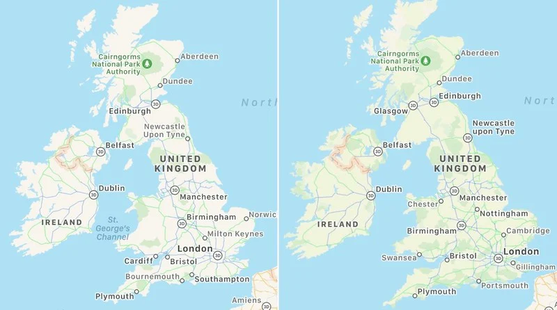 据经常分享苹果地图更新细节的Justin O'Beirne称,苹果已经开始在英国和爱尔兰测试扩展其更详细的苹果地图应用,由于这些国家的地图改版还处于测试阶段,目前并不是所有用户都能感受到这些变化。