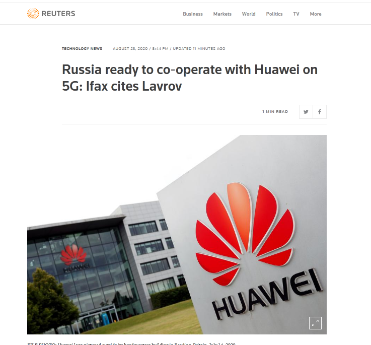 路透社刚刚援引俄罗斯国际文传电讯社消息称,俄外交部长拉夫罗夫表示,俄准备与中国以及中国公司华为在5G技术上开展合作。莫斯科目前正在努力发展5G技术。2019年6月,华为与俄罗斯最大电信公司MTS签署了协议。表示,2020年华为将在俄罗斯开发5G网络。