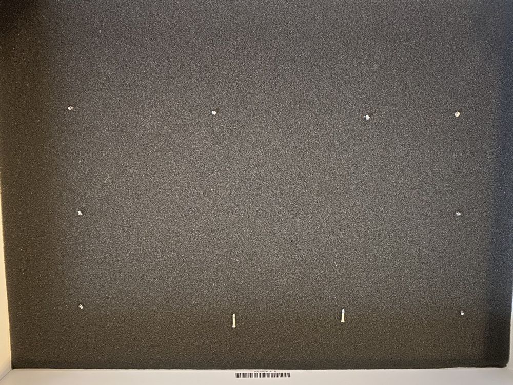 关闭电脑,使用 P5 取下 MacBook Air 的底座,并非所有的螺丝都是相同的长度,重要的是要让每个螺丝回到它出来的同一个孔中。你可以拿纸板把螺丝钉按类似螺丝孔的方向戳进纸板里。