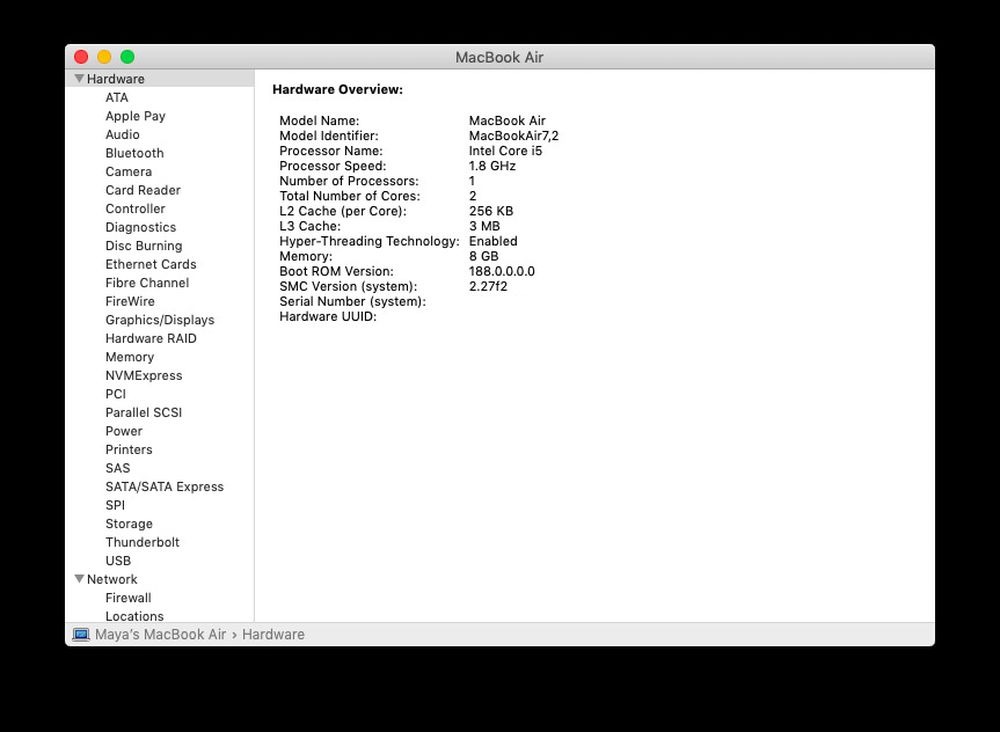 用户手头上的旧设备可能并不是 MacBook Air,可能是 MacBook Pro 或者 Mac Mini。通常情况下,2013-2017 年的 MacBook Air、2013-2015 年的 MacBook Pro 以及 2014 年的 Mac Mini 都是可以升级的,而且效果明显。当你点击 "关于这台 Mac"、"系统报告 "时,"硬件概览 "部分有一个型号识别码,你可以用它来判断兼容性。