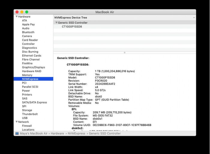 打开磁盘实用程序,将新的SSD硬盘格式化为GUID分区方案和macOS日志文件系统。完成后,退出磁盘工具,继续安装macOS。结果是电脑的速度会比原厂配置快,存储空间更大,而且硬盘会在系统报告中显示在NVMExpress下。
