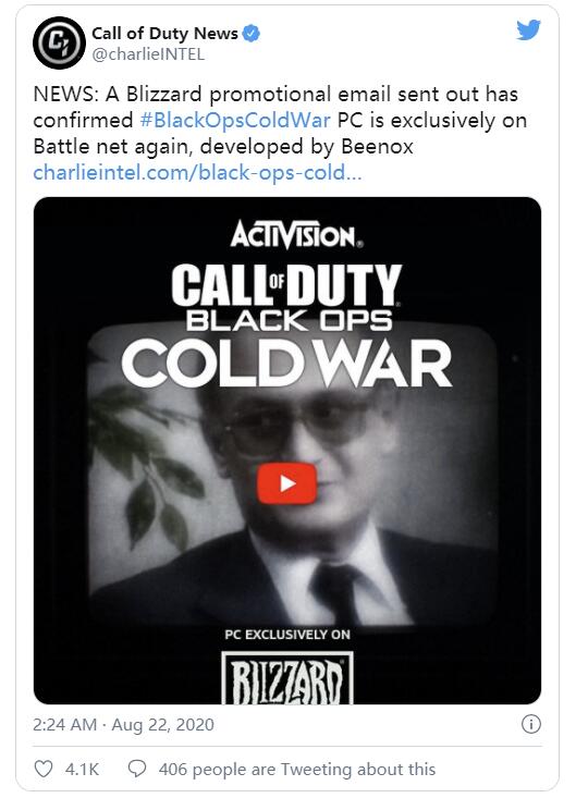 据Charlie INTEL在推特上的曝光,动视公司最近一直在为这款即将推出的新射击游戏发送宣传邮件,在这些邮件中,他们确认了游戏PC版依然为暴雪战网独占。考虑到去年的《使命召唤:现代战争》和其他过去的《使命召唤》游戏也已作为战网独家发行,这并不令人惊讶,尽管这肯定会是一个有争议的决定。