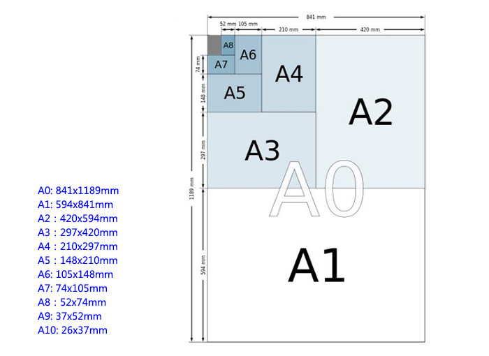 那么什么是A号纸吗?如果你认为A号纸家族只有A4纸这一种类型的话,那真的就太孤落寡闻了。其实除了我们最为常见的A4幅面以外,A型纸家族还包括了A0、A1、A2、A3、A4、A5、A6等幅面规格。