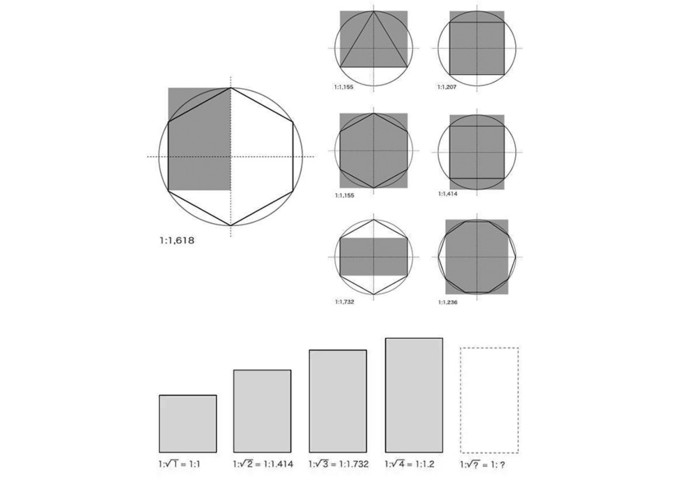 当我们看到黄金比例时,为何会产生视觉上的愉悦?就像是承载了古典主义美学精髓的黄金分割比例“1:1.618”;而当先驱们将有关比例的研究沿用到印刷术上之后,利用圆形与矩形的切割对称,加之数学计算得到大量不同的黄金比例。