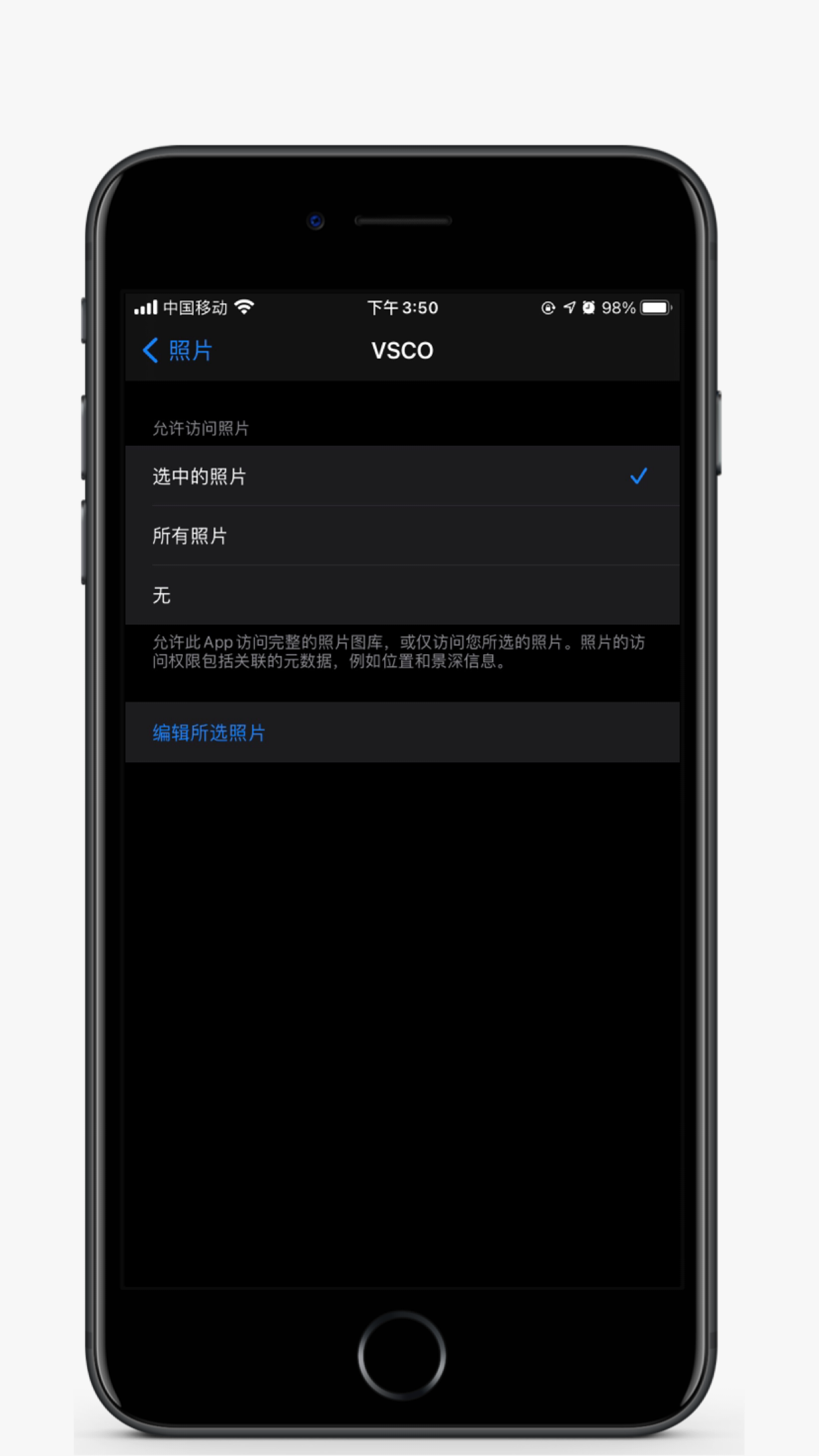 而 iOS 14 为用户提供了第三种选择,即让 App 只获取用户指定的照片。而其它照片,App 并没有权限获取。