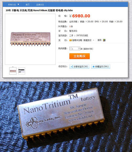 早年间某宝上挂售过氚电池,号称 20 年不断电不充电 | 网络