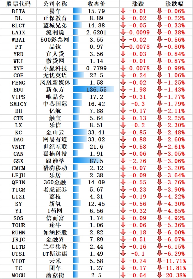 图:与上一交易日持平的其他中概股