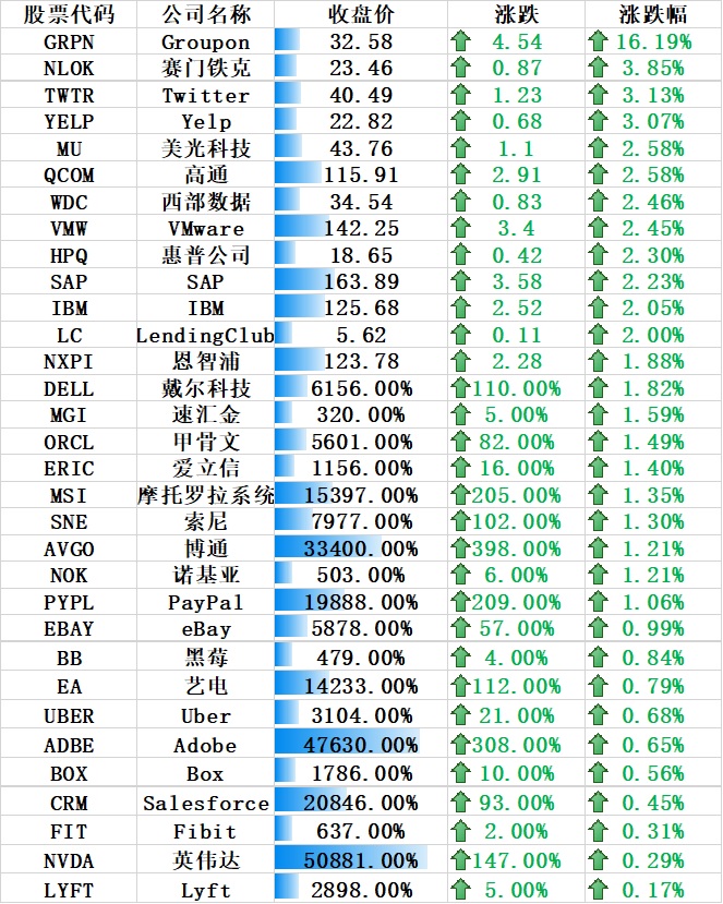其他国外科技股大多数上涨,其中上涨的公司包括: