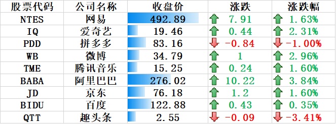 其他中概股涨跌互现,其中上涨的公司包括: