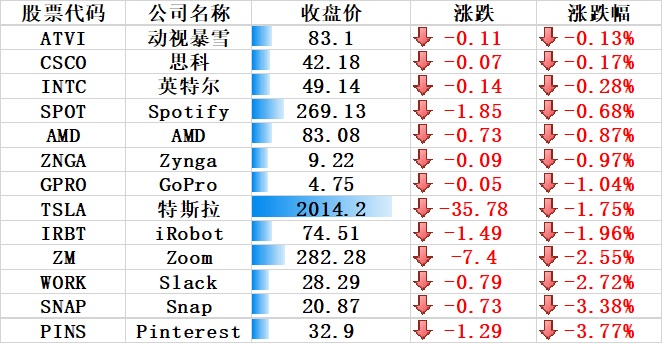 图:下跌的其他国外科技股