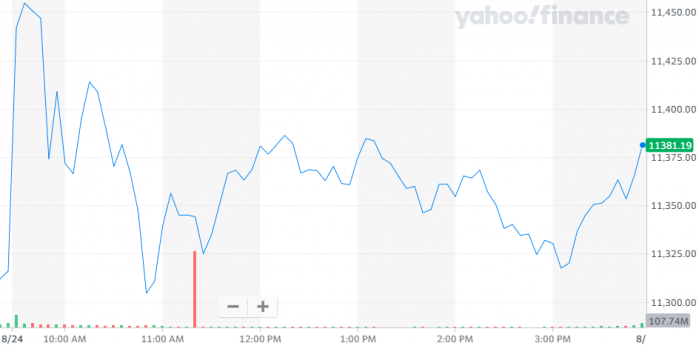 北京时间8月25日消息,美国政府考虑批准10月份“紧急使用”两款疫苗的消息推动美股收高,纳指上涨0.6%再创新高。截至收盘,道指涨378.13点,涨幅为1.35%,报收28308.46点;标普500指数涨34.12点,涨幅为1%,报收3431.28点;纳指涨67.92点,涨幅为0.6%,报收11379.72点。