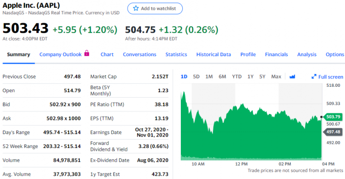 摩根士丹利分析师凯蒂·休伯蒂(Katy Huberty)和埃里克·伍德林(Erik Woodring)将苹果目标股价由431美元上调至520美元。他们星期一发表投资报告称,预计持续的服务业务增长和5G iPhone周期将拉动苹果2021财年营收增长2位数。今天常规交易中,苹果股价上涨5.95美元,涨幅为1.2%,报收于503.43美元,一度摸高515.14美元,这是苹果股价连续第5天上涨。今年以来,苹果股价累计上涨约71%,过去12个月上涨约146%。摩根士丹利报告称,媒体报告表明,政府对允许在海外使用微信的美国公司的限制,不像一些人最初担心的那样严格,这意味着,微信禁令不会对中国市场iPhone生态链产生负面影响,5G仍然“是未来升级周期的关键”。但拉弗.腾格勒投资公司(Laffer Tengler Investments)首席投资官南希·腾勒(Nancy Tengler)对雅虎财经表示,苹果股价最新一轮上涨的原因更多的是投机,“我们确实认为苹果将很快会出利好消息,但在我看来,这轮上涨带有很强的投机意味,人们只是想在‘1送4’拆股前进来捞一笔。我们认为,拆股后苹果股价将出现回调,届时投资者的注意力将转向别处。”