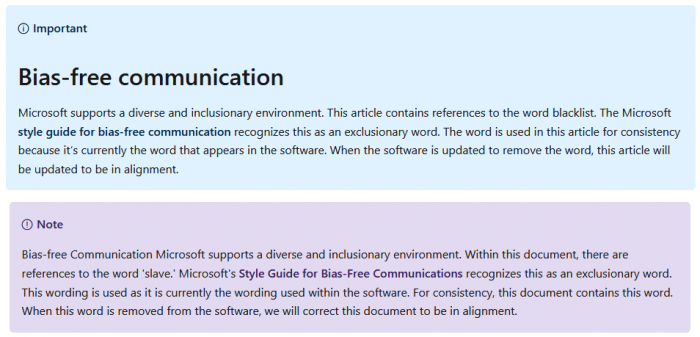 微软方面,类似的工作也在同步进行当中。事实上,早在几年前,该公司就已经在着手进行术语的清理替换。在与种族歧视相关的骚乱事件出现之后没多久,公司内部就有少数员工成立了一个内部小组,开始审查公司的源代码以及内外部文档中是否存在带有偏见性的语言,并用更具包容性的术语来进行代替。