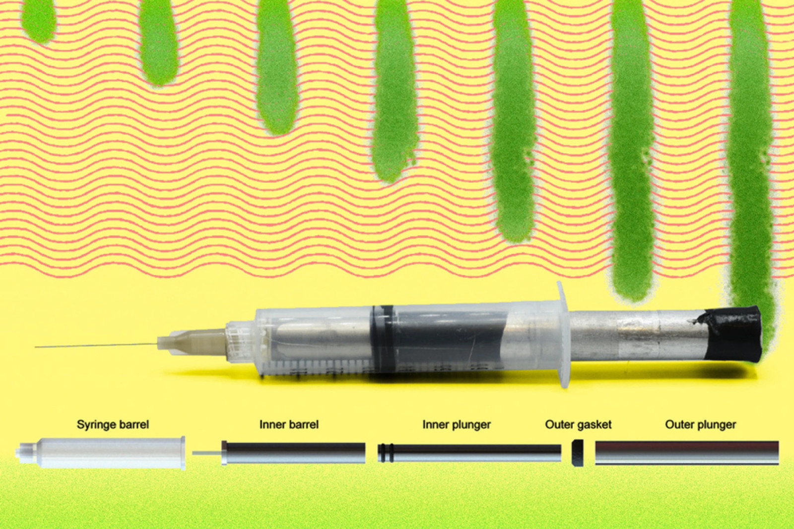 相反,麻省理工学院(MIT)的科学家们开发了一种原型皮下注射针头,这种注射器包含两个桶--一个套在另一个桶里。内桶包含粘稠的药物,外桶则包含生物相容的润滑液体。两个桶被同时激活按在一个柱塞里。