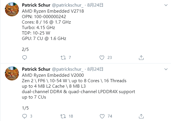 发布时间方面,锐龙嵌入式V2000系列有望在今年第四季度面世,但部分型号会拖到2021年第一季度,不过眼下新冠疫情仍然有很大的不确定性,不排除全部推迟到2021年第一季度的可能。