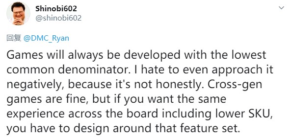 同时,著名的游戏界内部人士Shinobi也对Ryan McCaffrey的推特表示赞赏,他认为游戏将始终以最低硬件标准来开发,而且在过去几个月中,一些开发人员已经解决了这个问题。