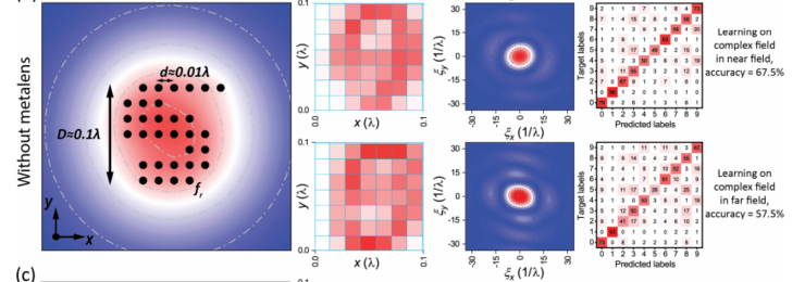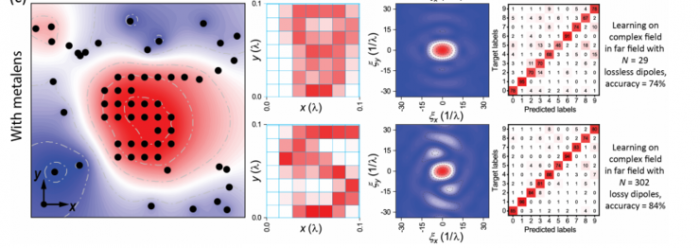 研究小组在亚波长输入图像(subwavelength input images)附近放置金属,并训练神经网络直接对图像进行重构和分类。其中,金属的吸收损失是有效学习的关键。