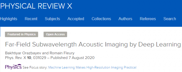 2020 年 8 月 7 日,该研究小组题为 Far-Field Subwavelength Acoustic Imaging by Deep Learning(基于深度学习的远场声学亚波长成像)的成果发表于国际顶级物理学期刊 Physical Review X。