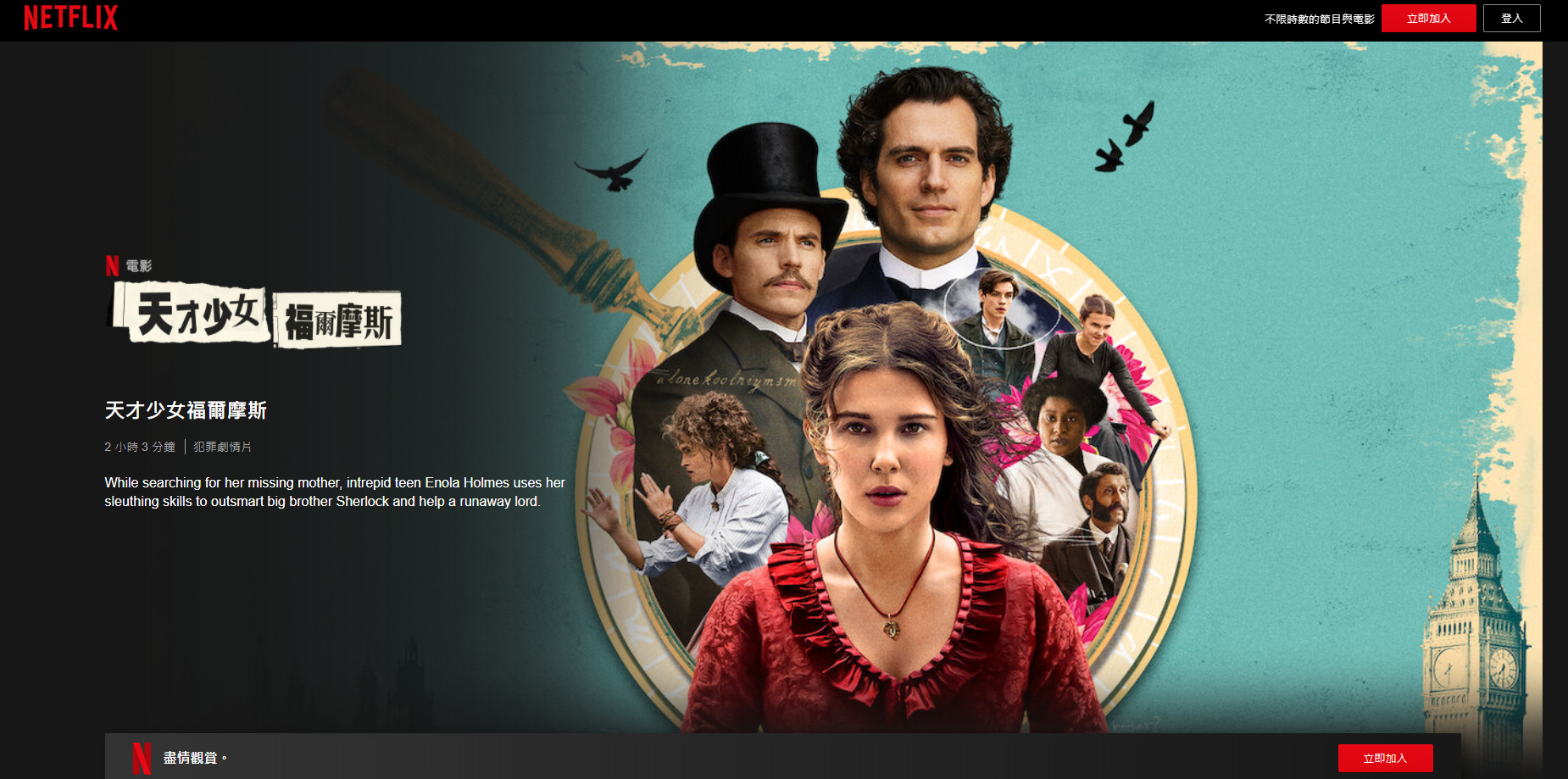 由《怪奇物语》中小11扮演者米莉·博比·布朗主演的Netflix新片《福尔摩斯小姐:消失的侯爵》,首支预告片正式公布,中字。《福尔摩斯小姐》由《杀死伊芙》、《伦敦生活》等电视剧导演Harry Bradbeer执导,米莉·博比·布朗、“大超”亨利卡维尔、山姆·克拉弗林、海伦娜·伯翰·卡特等出演。