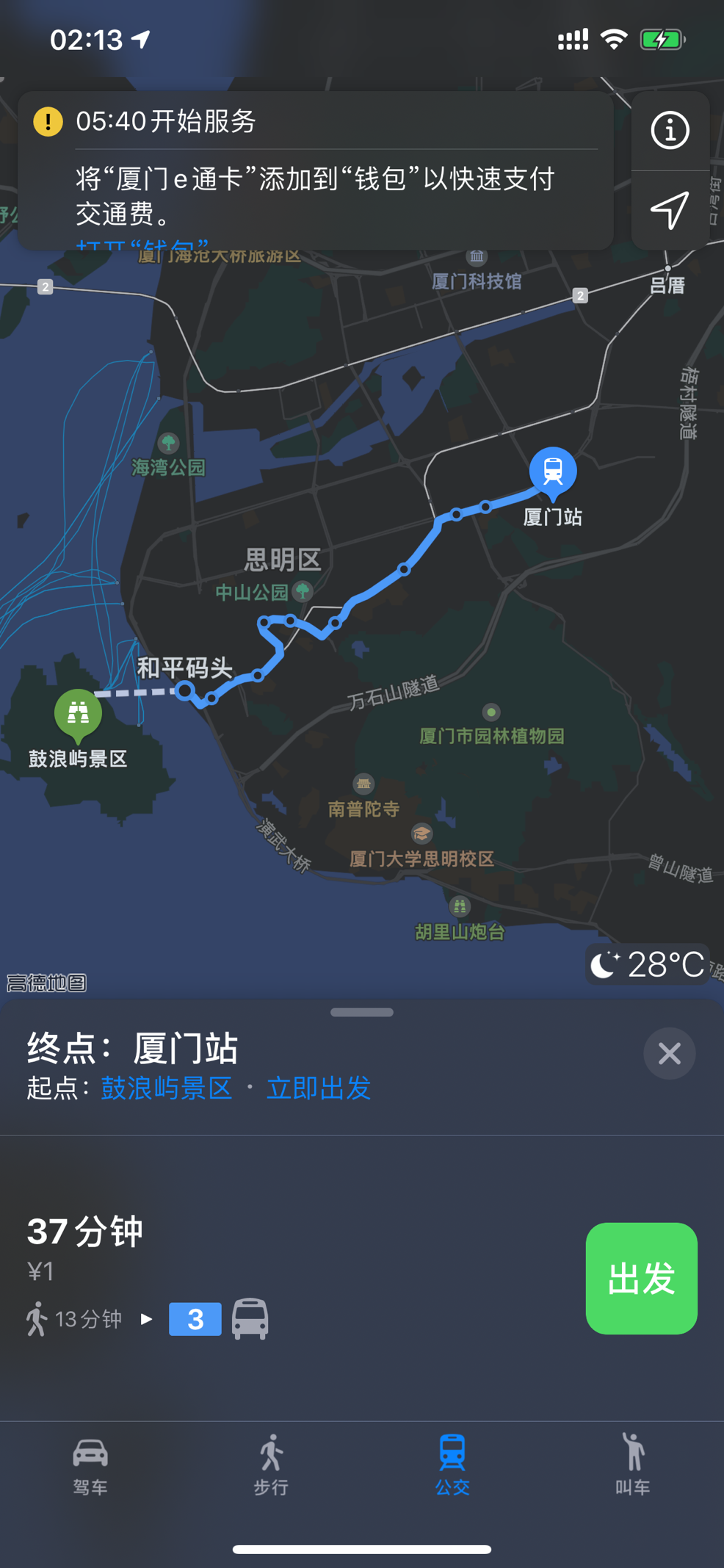 8月26日消息,从今天起苹果Apple Pay交通卡将支持添加厦门e通卡,厦门也是Apple Pay在全国支持的第六个城市,支持免服务费开卡;并且现在使用Apple地图不仅可以根据费用和时间信息直接在iPhone上规划地铁和公交路线,还可以直接进行支付。