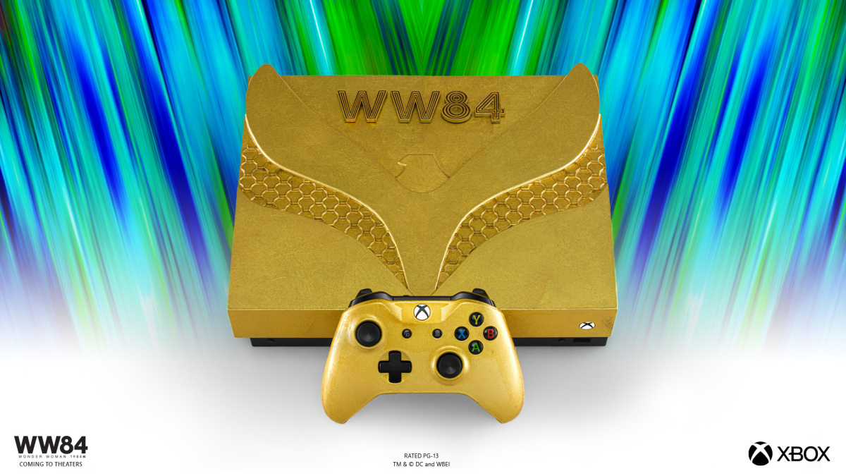 第一款定制版XboxOne X主机采用神奇女侠的黄金盔甲设计,使用24K金纯手工打造并配有3D打印的《神奇女侠1984》LOGO,这台黄金游戏机的拍卖所得还将用于保护妇女和儿童、支持抗疫等。