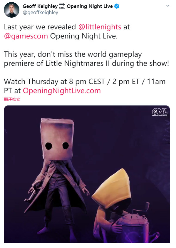 《帝国时代》官推确认《帝国时代3:终极版》将参加2020年科隆展开幕之夜直播,公布更多消息。此外主持人Geoff Keighley还确认万代独立游戏《小小梦魇2》也会参加。
